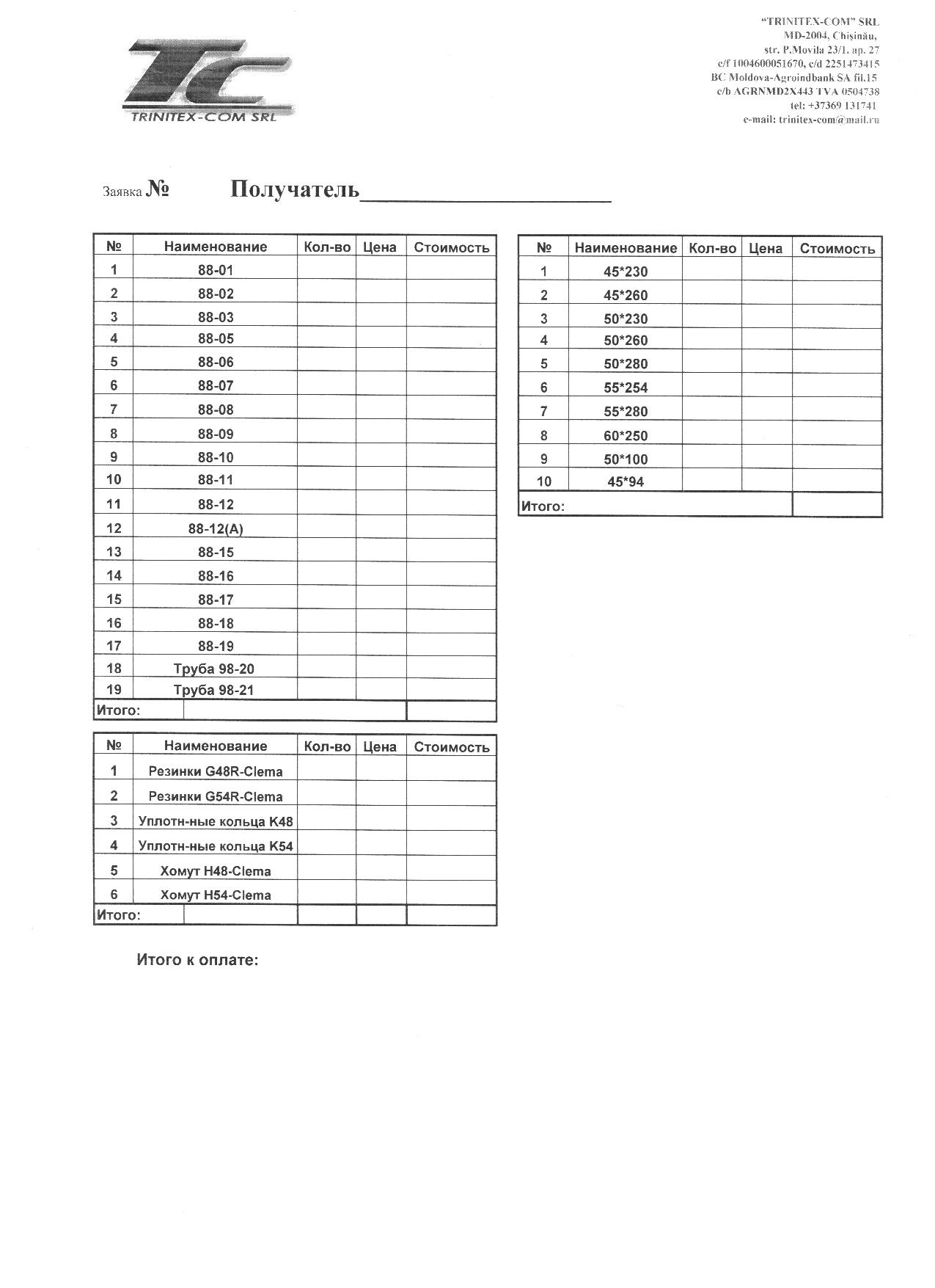 После заполнения Заказа , отправьте его на наш email : trinitex-com@mail.ru